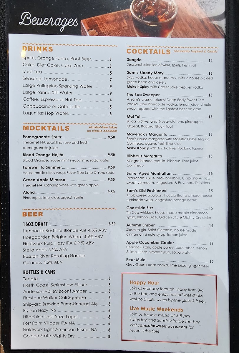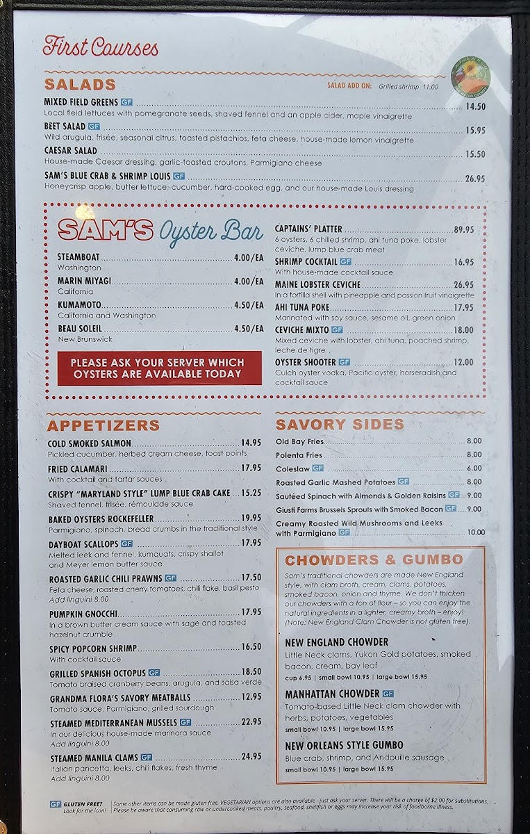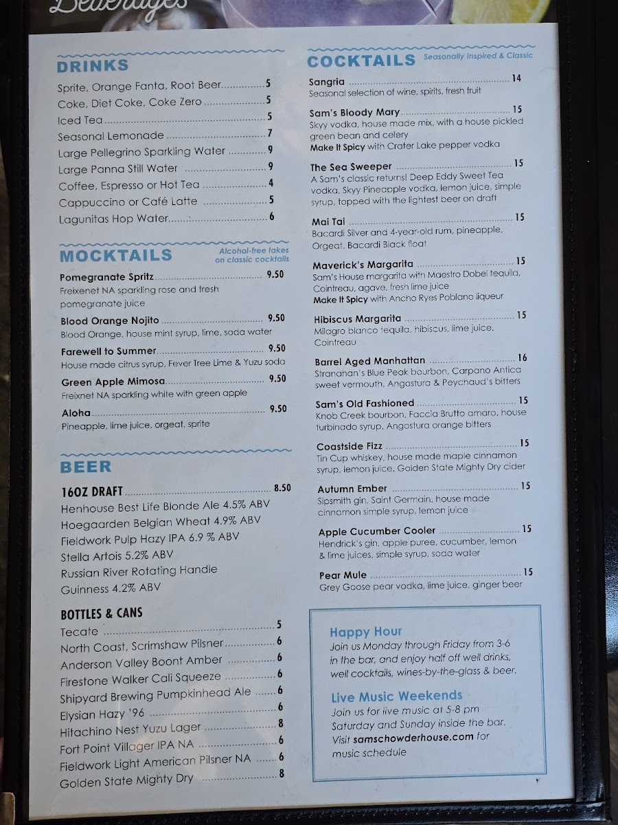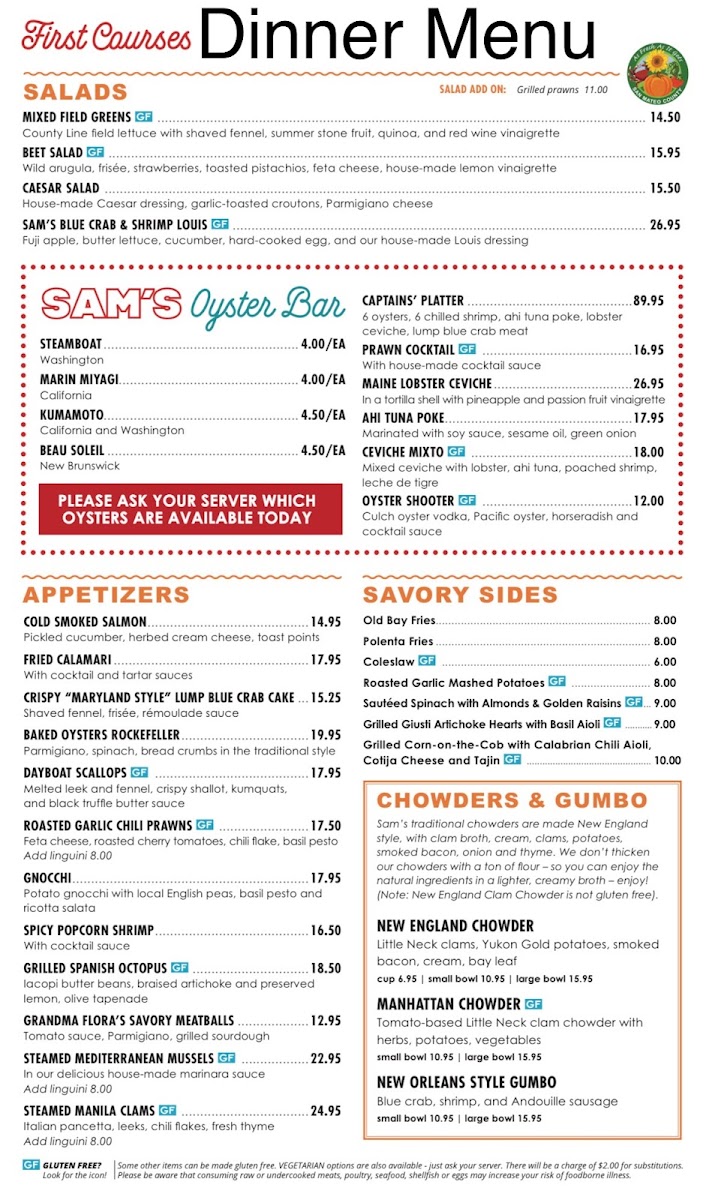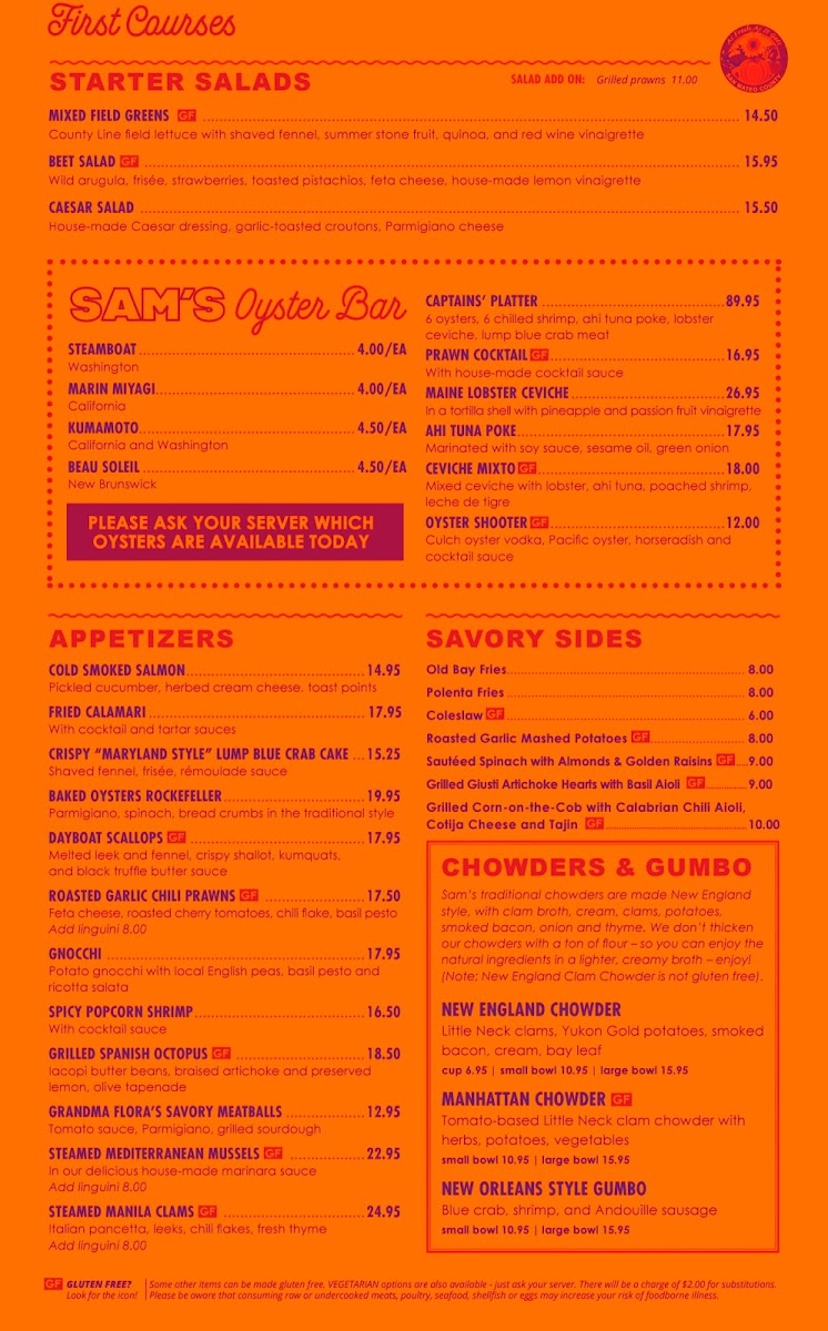 Sam's Chowder House Menu